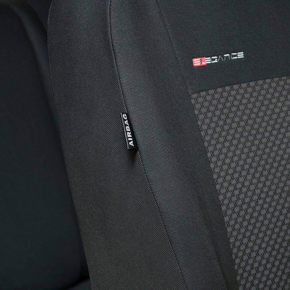 - Tack vare användandet av certifierade AIRBAG-sömmar stör överdragen inte luftkuddarnas funktion och lämpar sig både för säten utrustade med sidokrockkuddar och standardsäten (utan krockkuddar).