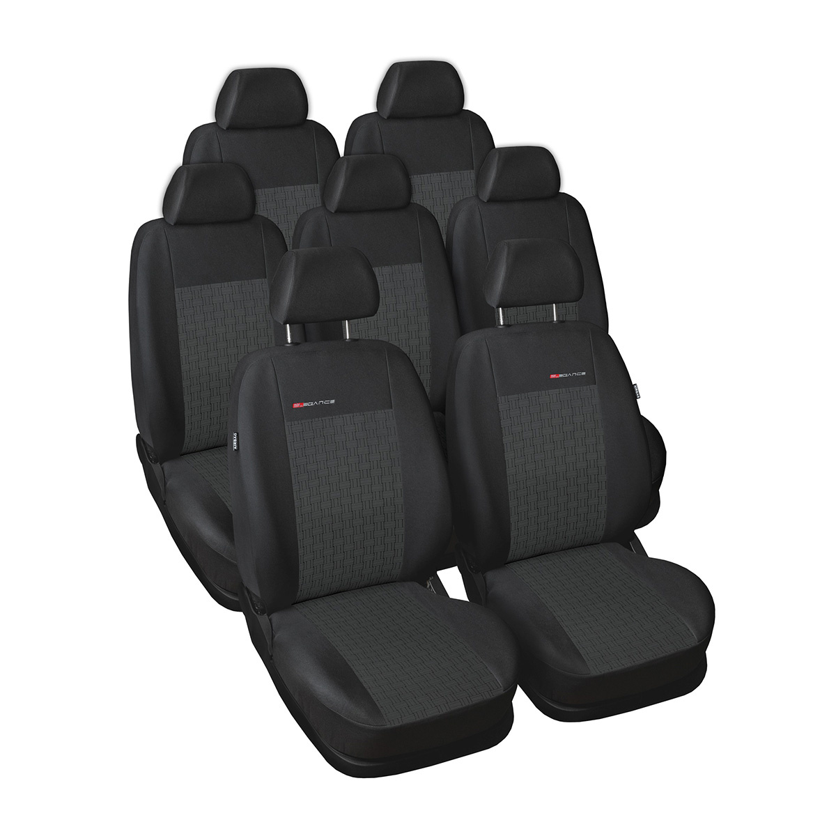 Måttsydda överdrag till Seat Alhambra II Skåpbil (2010-2020) med bilbarnstolar i baksäten - skräddarsydda sätesöverddrag - E1