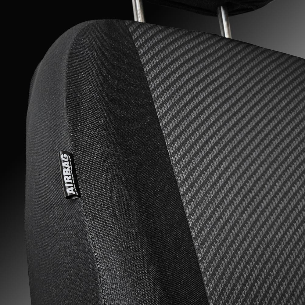 - Tack vare användandet av certifierade AIRBAG-sömmar stör överdragen inte luftkuddarnas funktion och lämpar sig både för säten utrustade med sidokrockkuddar och standardsäten (utan krockkuddar).