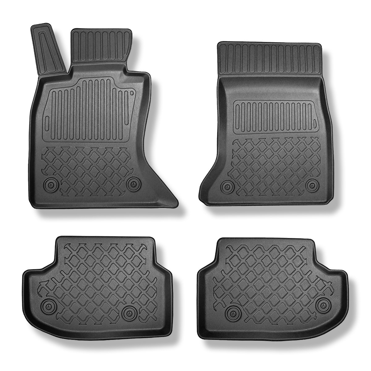 Sats bagagerumsmatta och bilmattor TPE måttillverkade till: BMW Serie 5 F10 Limousine (2013-01.2017) - X-drive; avstånd mellan framsätens skenor (bak) 365 mm
