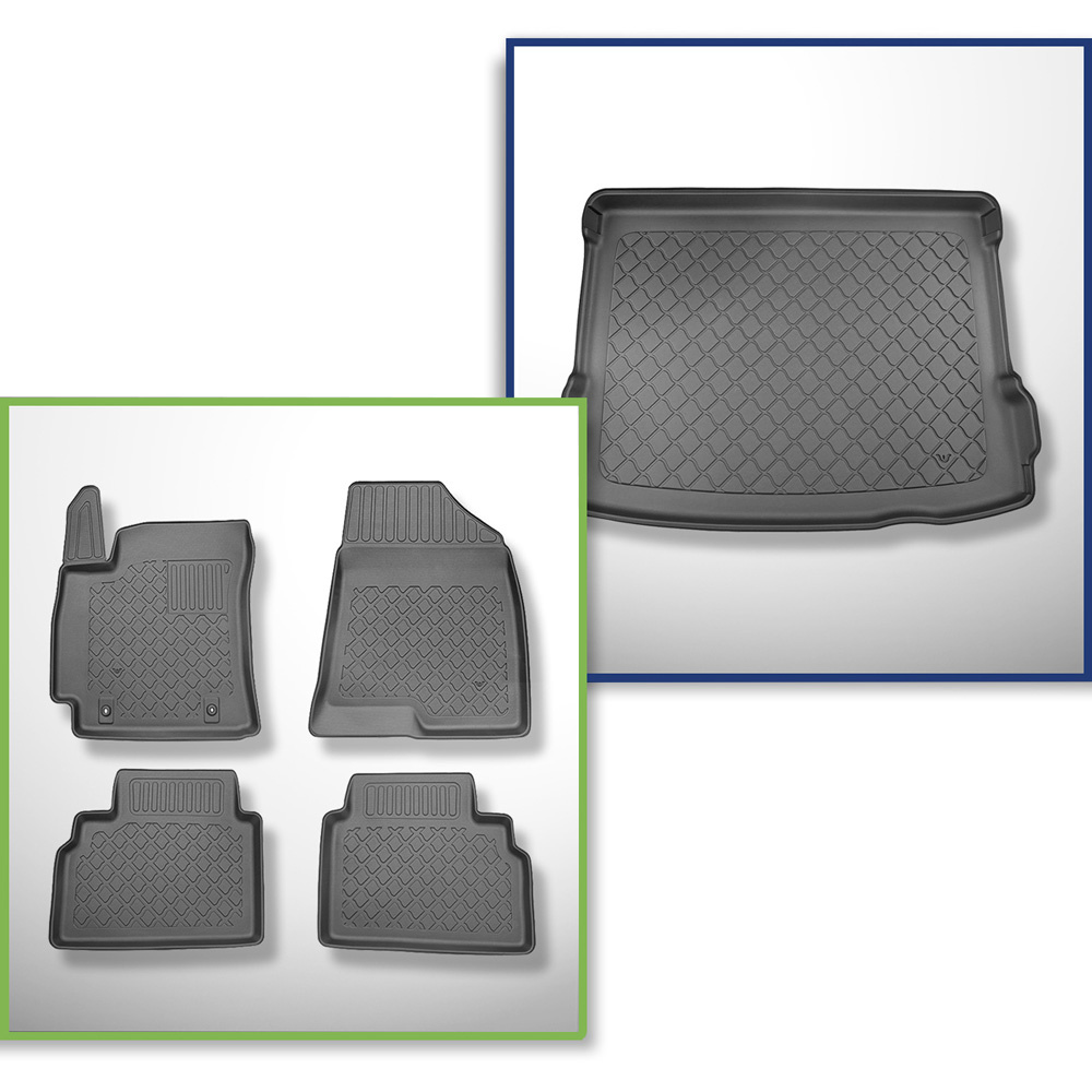 Sats bagagerumsmatta och bilmattor TPE måttillverkade till: Hyundai Kona II SUV (04.2023-....) - övre bagagerum; rörligt golv i översta läget; med och utan subwoofer; ej till elektrisk version; även med hybriddrift