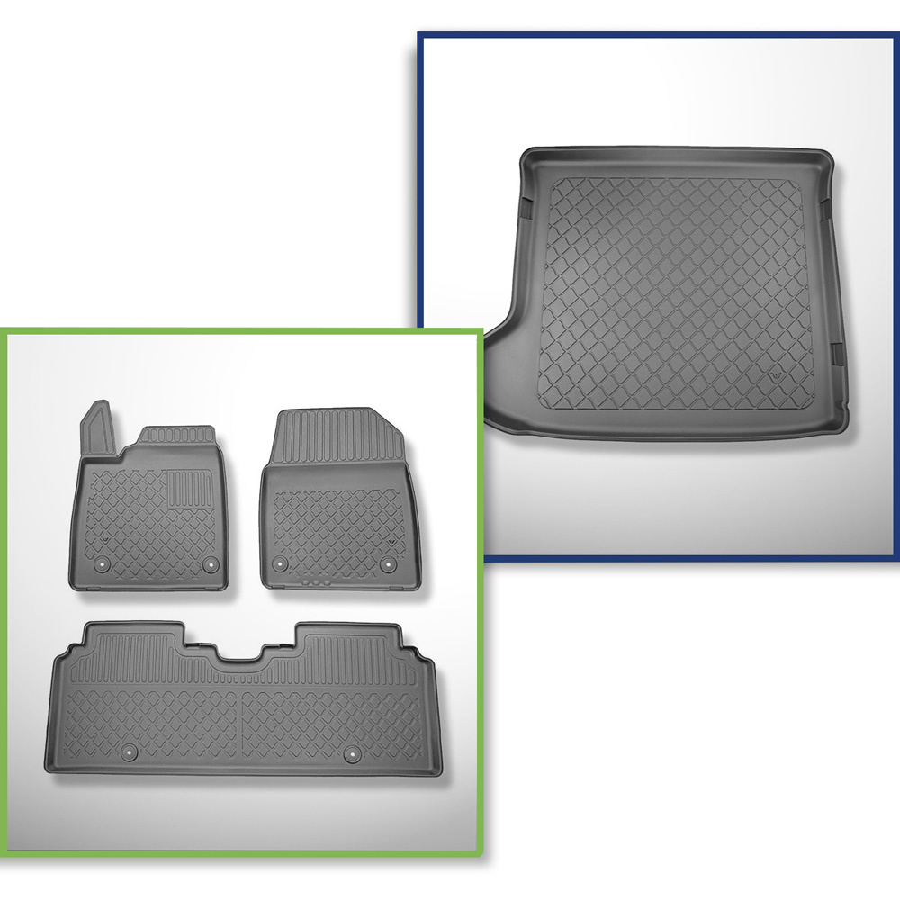 Sats bagagerumsmatta och bilmattor TPE måttillverkade till: Kia EV6 Crossover (10.2021-....) - övre bagagerum; dubbelt bagagerumsgolv i översta läget