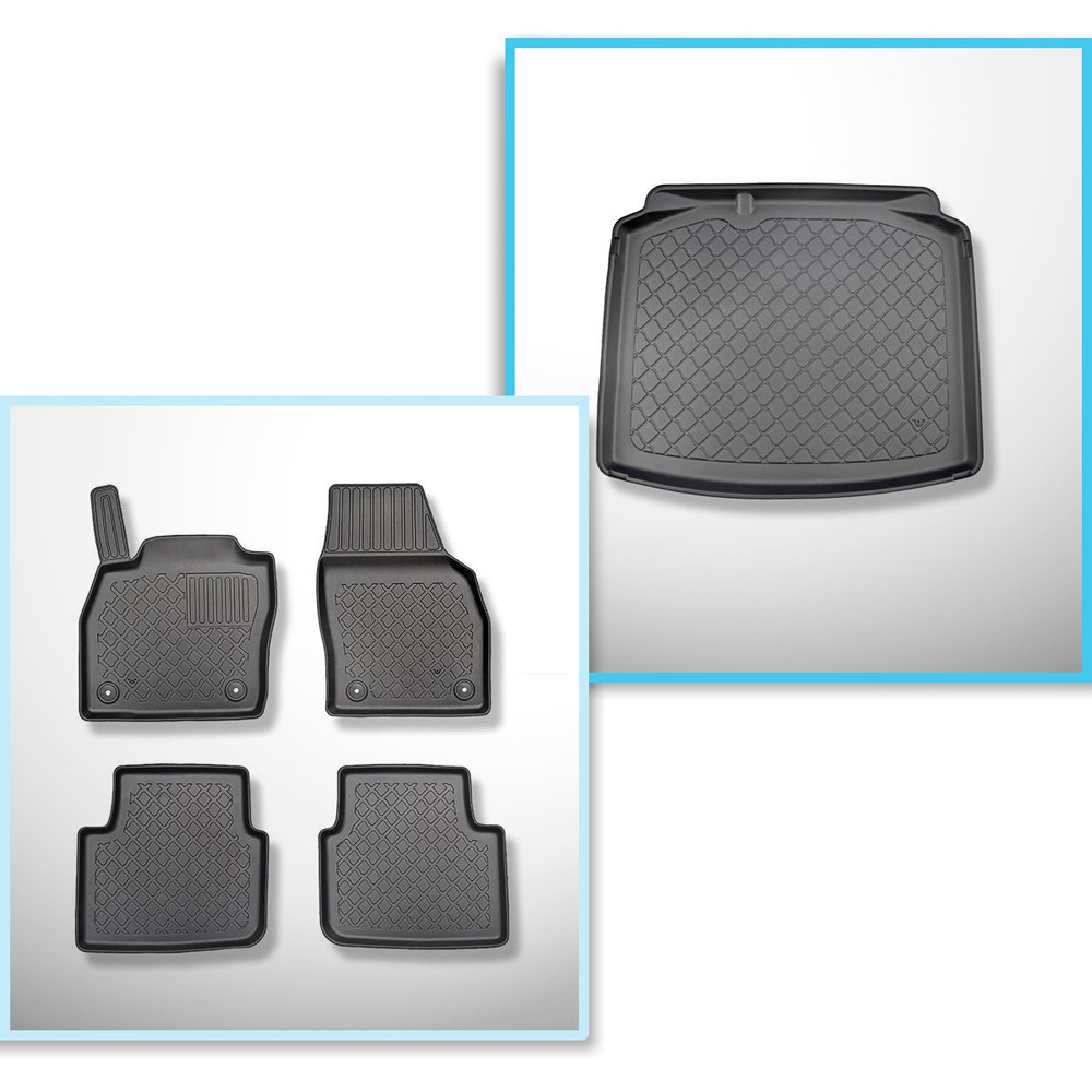 Sats bagagerumsmatta och bilmattor TPE måttillverkade till: Skoda Scala Kombikupé (04.2019-....) - nedre bagagerum (utan multifunktionellt golv)