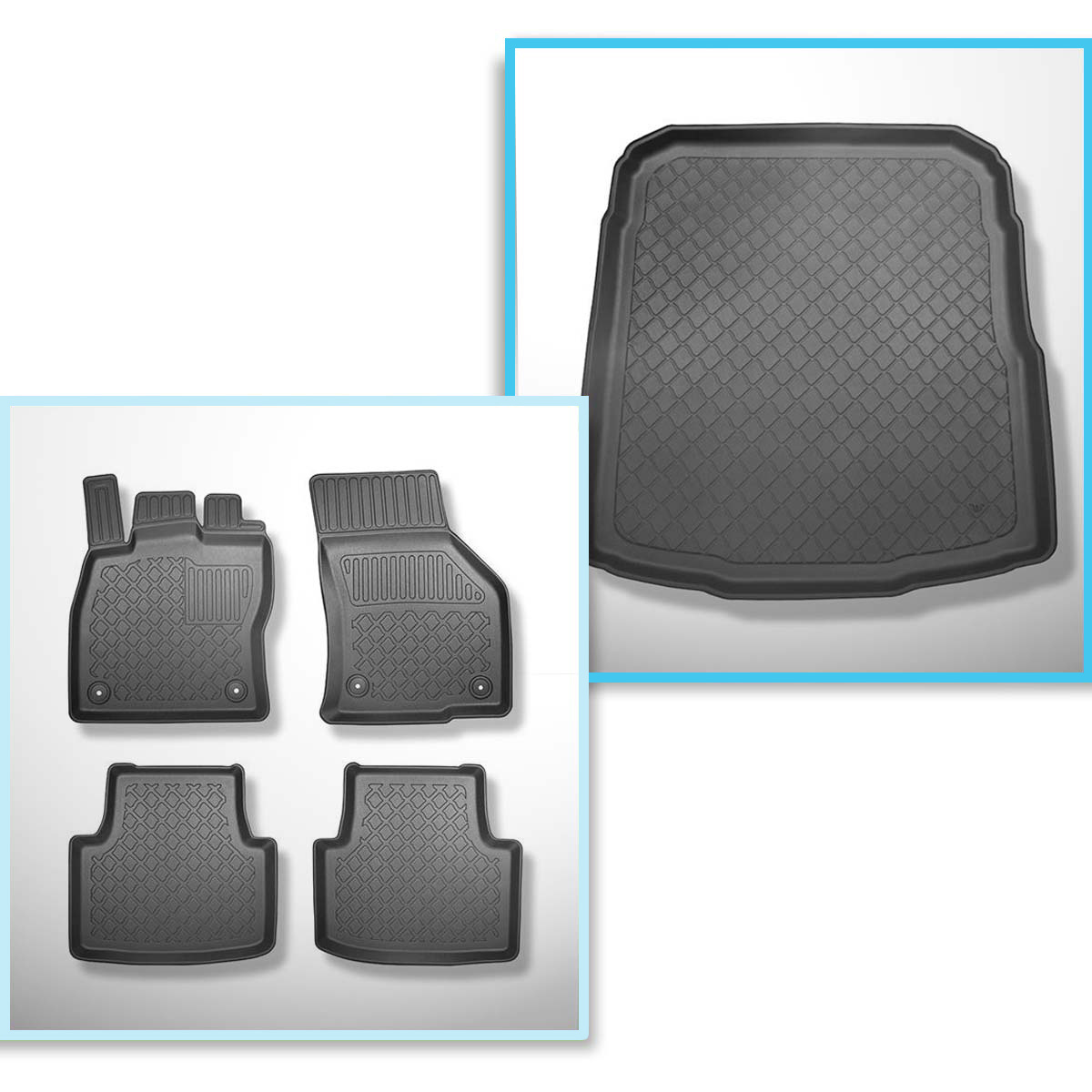 Sats bagagerumsmatta och bilmattor TPE måttillverkade till: Volkswagen Passat B8 Sedan (12.2014-12.2021) - nedre bagagerum: med nödreservhjul eller reparationssats