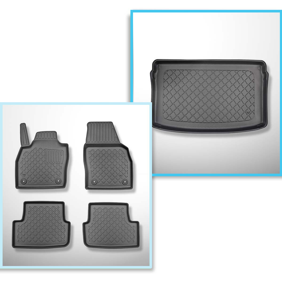 Sats bagagerumsmatta och bilmattor TPE måttillverkade till: Volkswagen Polo VI AW Kombikupé (10.2017-....) - övre bagagerum; rörligt golv i översta läget