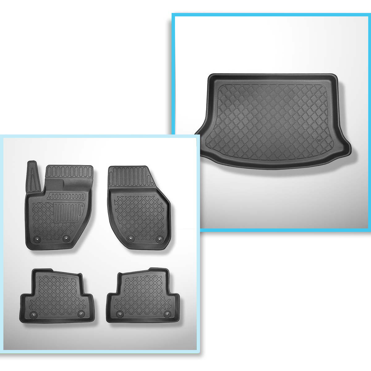 Sats bagagerumsmatta och bilmattor TPE måttillverkade till: Volvo V40 II Cross Country Kombikupé (07.2012-07.2019) - nedre bagagerum; till bilar utan dubbelt bagagerumsgolv