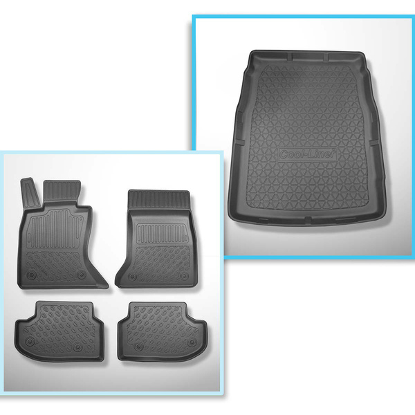 Sats bagagerumsmatta och bilmattor TPE PREMIUM måttillverkade till: BMW Serie 5 F10 Limousine (2013-01.2017) - X-drive; avstånd mellan framsätens skenor (bak) 365 mm