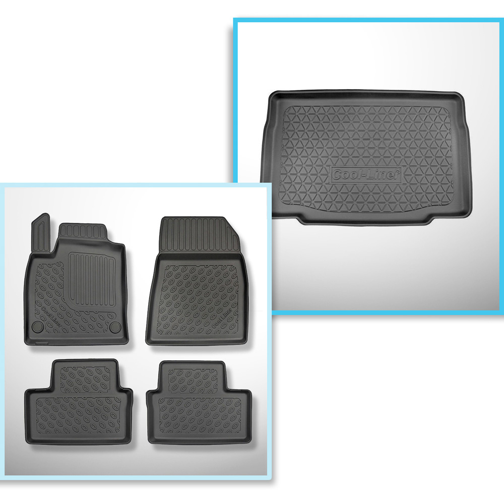 Sats bagagerumsmatta och bilmattor TPE PREMIUM måttillverkade till: Mitsubishi Colt VII Kombikupé (10.2023-....) - nedre bagagerum; till bilar utan dubbelt bagagerumsgolv; även med hybriddrift
