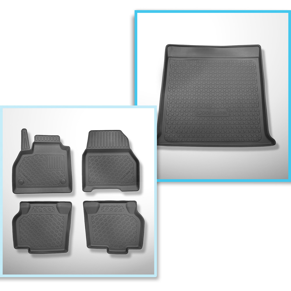 Sats bagagerumsmatta och bilmattor TPE PREMIUM måttillverkade till: Renault Kangoo II Skåpbil (2008-04.2021) - 5 platser; axelavstånd 3.081 mm; extra lång version; utan tredje raden