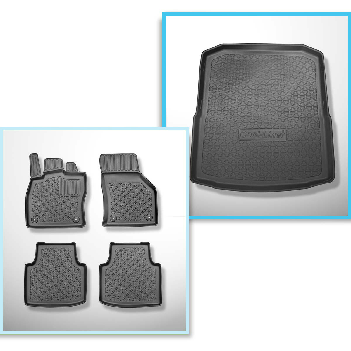Sats bagagerumsmatta och bilmattor TPE PREMIUM måttillverkade till: Skoda Superb III 3V Kombisedan (05.2015-11.2023) - ej till hybridversion