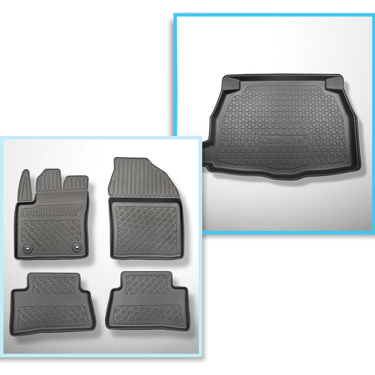 Sats bagagerumsmatta och bilmattor TPE PREMIUM måttillverkade till: Toyota C-HR SUV (01.2017-12.2023) - med / utan subwoofer; möjlighet att skära bort höger kant; även till hybrid; ej till 2.0 Hybrid Dynamic Force version