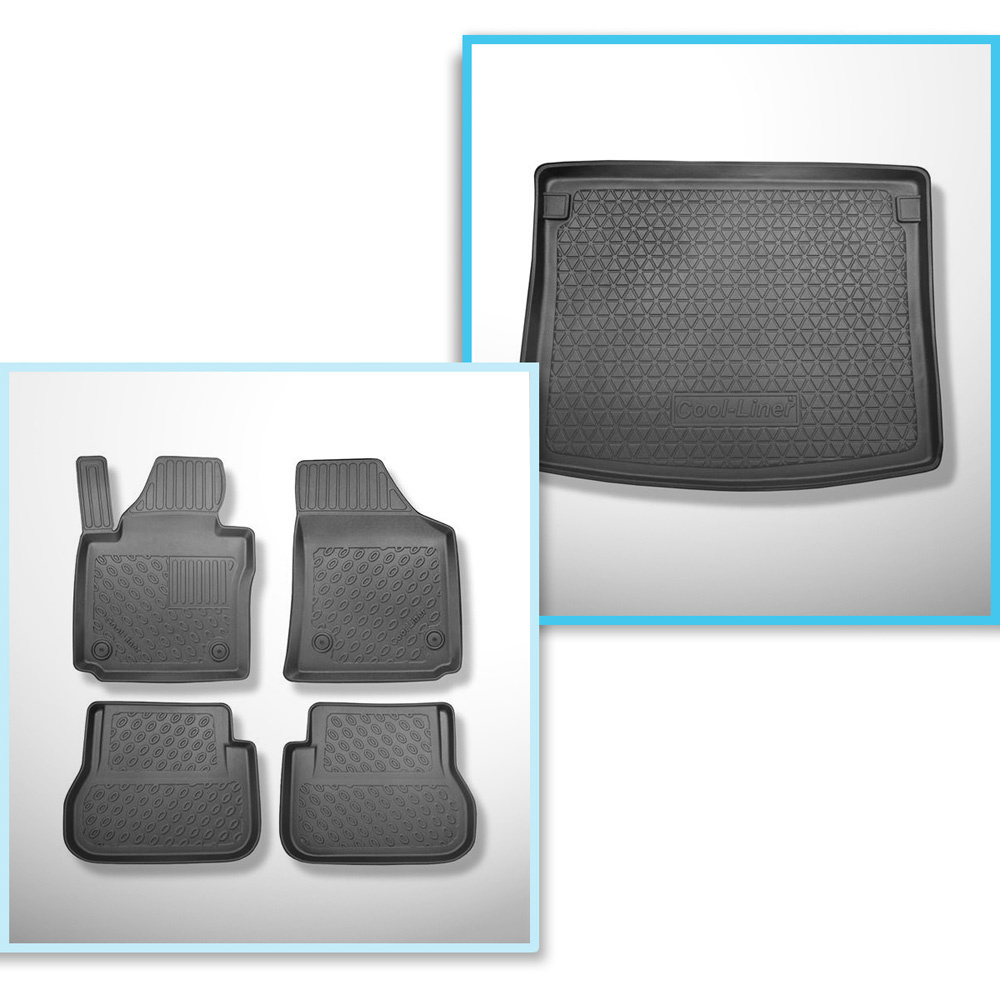 Sats bagagerumsmatta och bilmattor TPE PREMIUM måttillverkade till: Volkswagen Caddy Startline Kombi (2004-10.2020) - 5 platser; plåt på bagagerummets sidoväggar