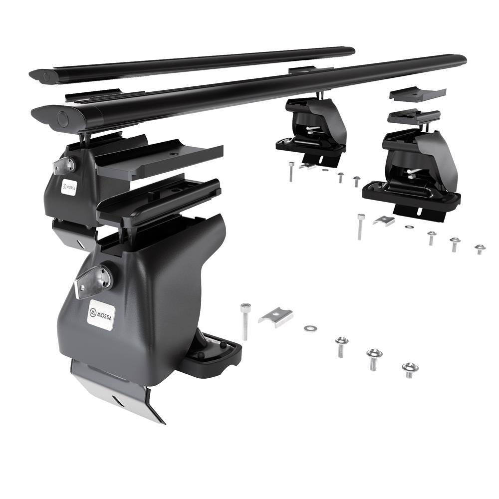 - 4 st. fötter (hållare) – till standardtak utan fästpunkter från fabrik – fastsätts i takkant, lastkapacitet 70 kg (eller enligt biltillverkarens rekommendationer).