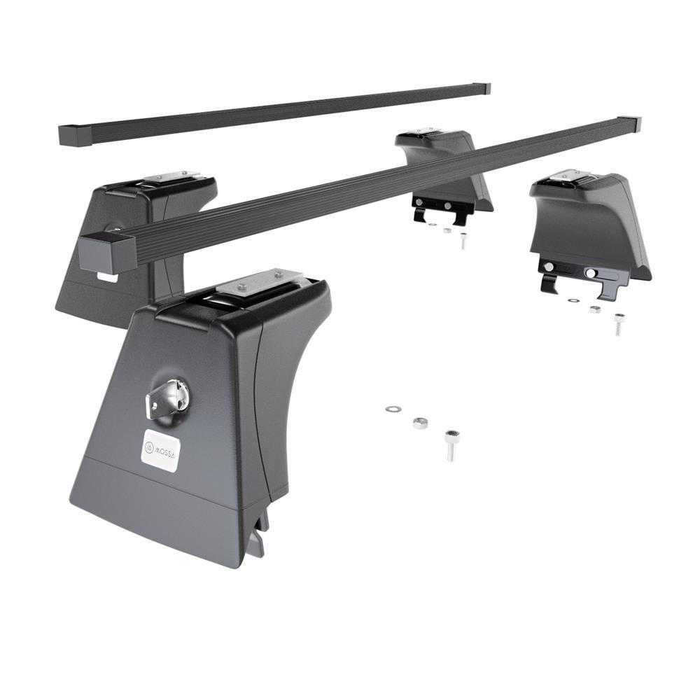- 4 st. fötter (hållare) – till tak med fästpunkter från fabrik (beroende på modell kan de finnas på olika platser), lastkapacitet 75 kg (eller enligt biltillverkarens rekommendationer).