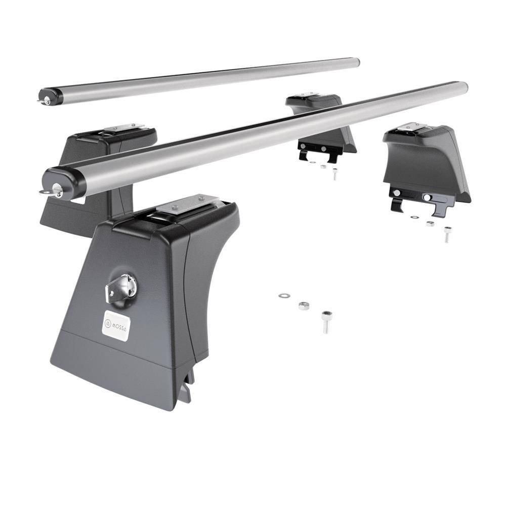 - 4 st. fötter (hållare) – till tak med fästpunkter från fabrik (beroende på modell kan de finnas på olika platser), lastkapacitet 75 kg (eller enligt biltillverkarens rekommendationer).