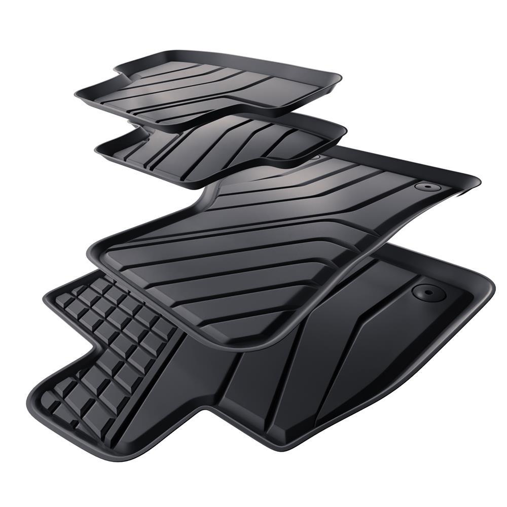 - Den perfekta passformen och golvfästen (om de finns i aktuell bilmodell) förhindrar förflyttning av mattan under färden. Mattorna tillverkas med iakttagande av de högsta kvalitetsstandarderna och material som används i produktionen är säkra för hälsan och återvinningsbara. Mattorna är vattentäta och lättskötta (de kan rengöras under rinnande vatten eller genom högtryckstvätt).