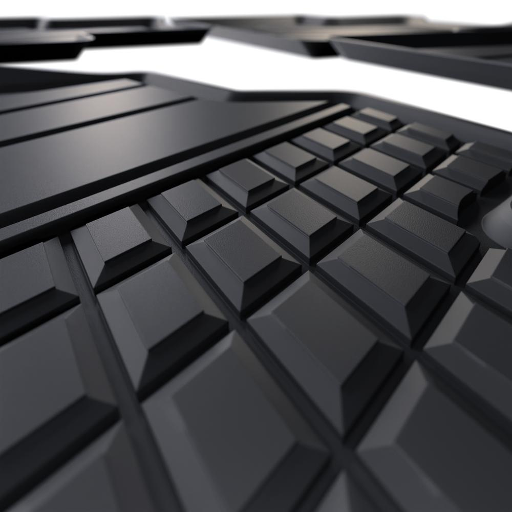 - Den perfekta passformen och golvfästen (om de finns i aktuell bilmodell) förhindrar förflyttning av mattan under färden. Mattorna tillverkas med iakttagande av de högsta kvalitetsstandarderna och material som används i produktionen är säkra för hälsan och återvinningsbara. Mattorna är vattentäta och lättskötta (de kan rengöras under rinnande vatten eller genom högtryckstvätt).