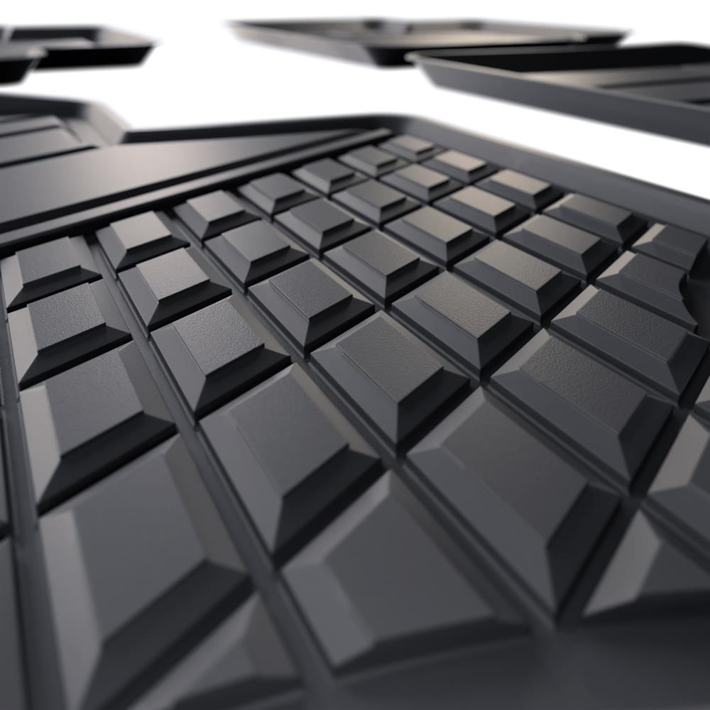 - Den perfekta passformen och golvfästen (om de finns i aktuell bilmodell) förhindrar förflyttning av mattan under färden. Mattorna tillverkas med iakttagande av de högsta kvalitetsstandarderna och material som används i produktionen är säkra för hälsan och återvinningsbara. Mattorna är vattentäta och lättskötta (de kan rengöras under rinnande vatten eller genom högtryckstvätt).