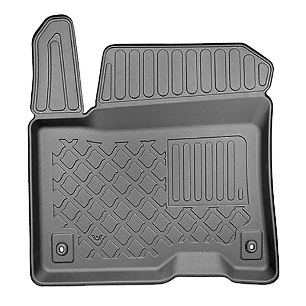 - Den perfekta passformen och golvfästen (om de finns i aktuell bilmodell) förhindrar förflyttning av mattan under färden. Mattorna tillverkas med iakttagande av de högsta kvalitetsstandarderna och material som används i produktionen är säkra för hälsan och återvinningsbara. Mattorna är vattentäta och lättskötta (de kan rengöras under rinnande vatten eller genom högtryckstvätt).