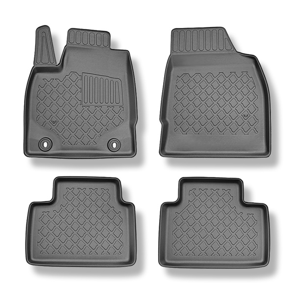- Den perfekta passformen och golvfästen (om de finns i aktuell bilmodell) förhindrar förflyttning av mattan under färden. Mattorna tillverkas med iakttagande av de högsta kvalitetsstandarderna och material som används i produktionen är säkra för hälsan och återvinningsbara. Mattorna är vattentäta och lättskötta (de kan rengöras under rinnande vatten eller genom högtryckstvätt).