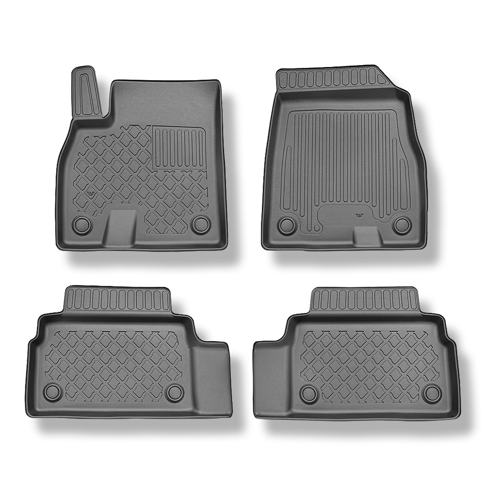 - Den perfekta passformen och golvfästen (om de finns i aktuell bilmodell) förhindrar förflyttning av mattan under färden. Mattorna tillverkas med iakttagande av de högsta kvalitetsstandarderna och material som används i produktionen är säkra för hälsan och återvinningsbara. Mattorna är vattentäta och lättskötta (de kan rengöras under rinnande vatten eller genom högtryckstvätt).