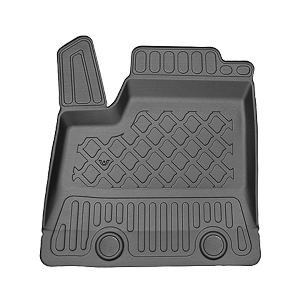- Den perfekta passformen och golvfästen (om de finns i aktuell bilmodell) förhindrar förflyttning av mattan under färden. Mattorna tillverkas med iakttagande av de högsta kvalitetsstandarderna och material som används i produktionen är säkra för hälsan och återvinningsbara. Mattorna är vattentäta och lättskötta (de kan rengöras under rinnande vatten eller genom högtryckstvätt).