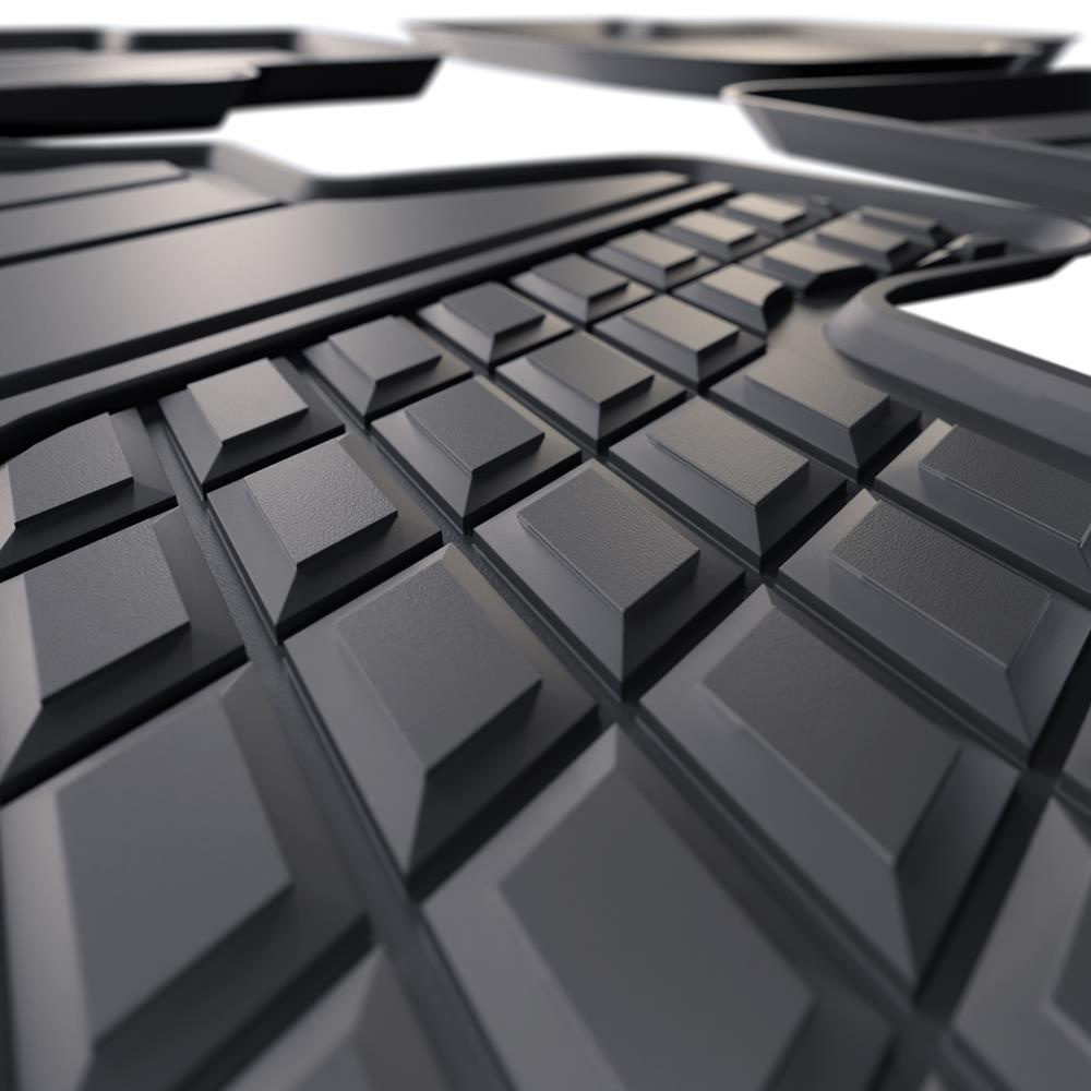 - Den perfekta passformen och golvfästen (om de finns i aktuell bilmodell) förhindrar förflyttning av mattan under färden. Mattorna tillverkas med iakttagande av de högsta kvalitetsstandarderna och material som används i produktionen är säkra för hälsan och återvinningsbara. Mattorna är vattentäta och lättskötta (de kan rengöras under rinnande vatten eller genom högtryckstvätt).