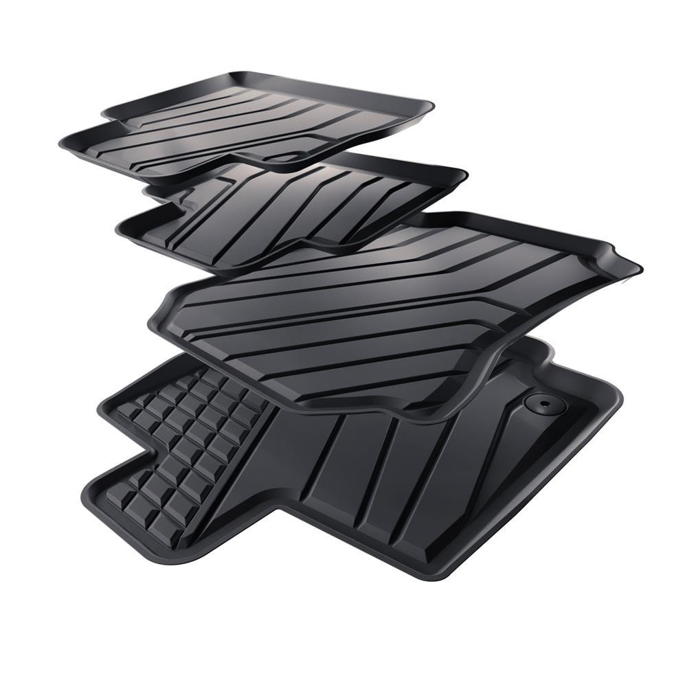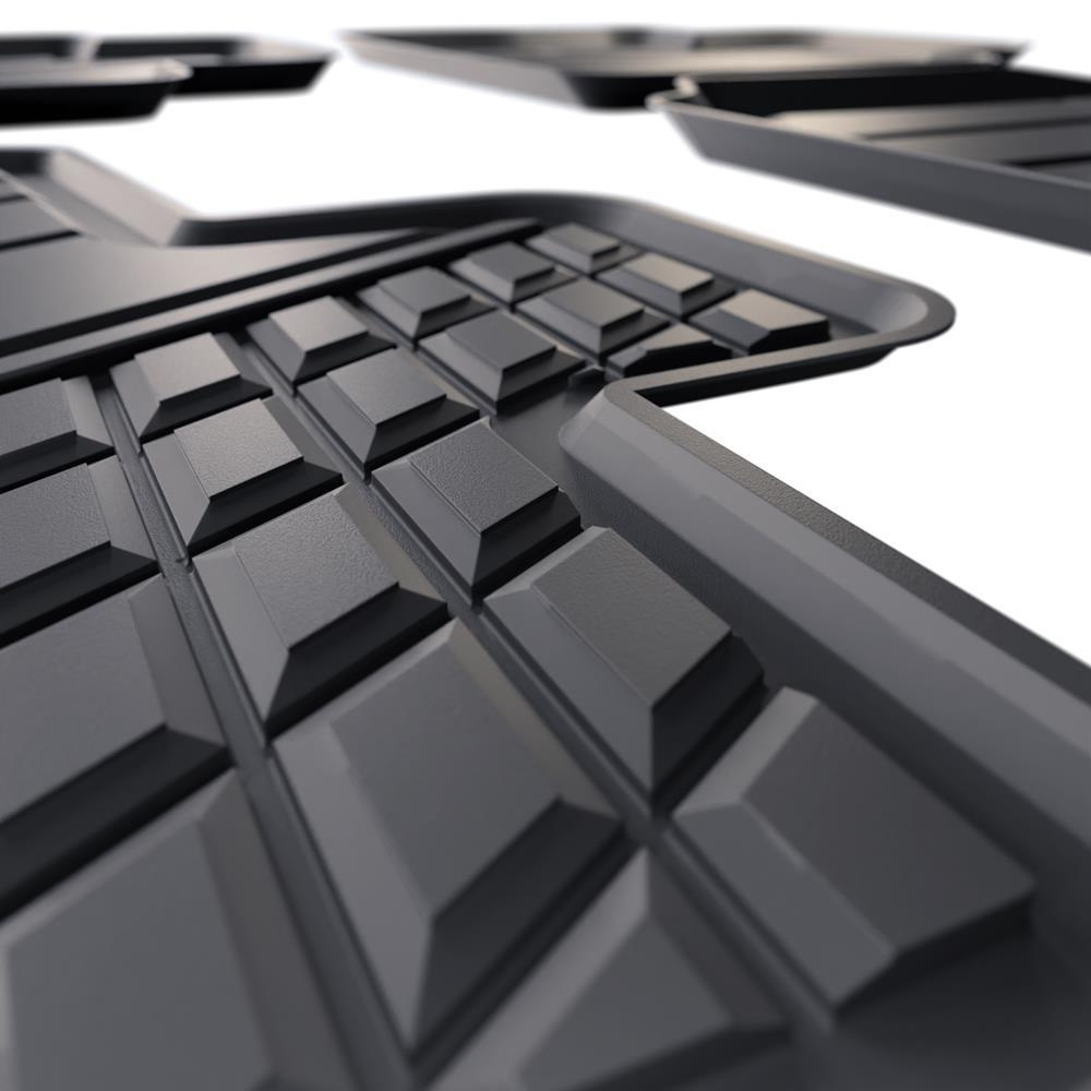 - Den perfekta passformen och golvfästen (om de finns i aktuell bilmodell) förhindrar förflyttning av mattan under färden. Mattorna tillverkas med iakttagande av de högsta kvalitetsstandarderna och material som används i produktionen är säkra för hälsan och återvinningsbara. Mattorna är vattentäta och lättskötta (de kan rengöras under rinnande vatten eller genom högtryckstvätt).