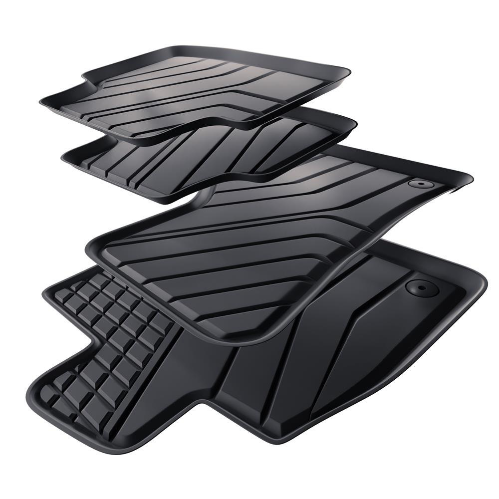 - Den perfekta passformen och golvfästen (om de finns i aktuell bilmodell) förhindrar förflyttning av mattan under färden. Mattorna tillverkas med iakttagande av de högsta kvalitetsstandarderna och material som används i produktionen är säkra för hälsan och återvinningsbara. Mattorna är vattentäta och lättskötta (de kan rengöras under rinnande vatten eller genom högtryckstvätt).