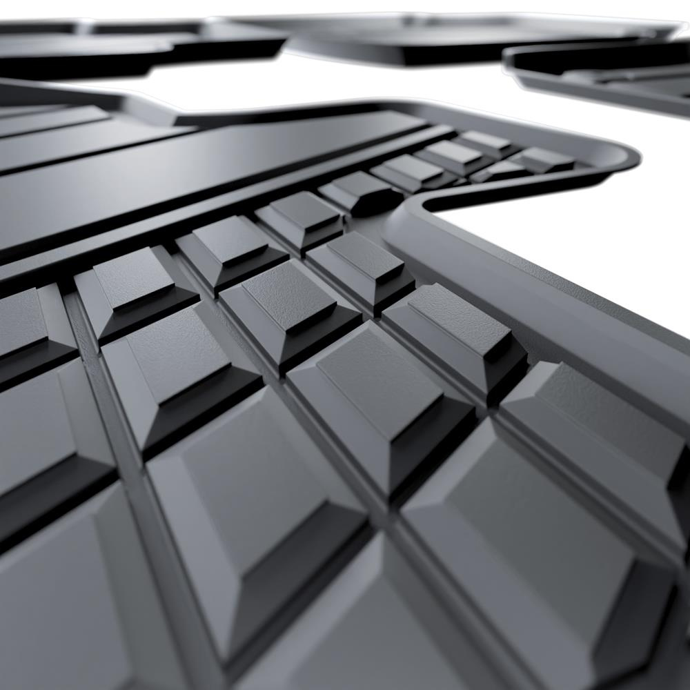 - Den perfekta passformen och golvfästen (om de finns i aktuell bilmodell) förhindrar förflyttning av mattan under färden. Mattorna tillverkas med iakttagande av de högsta kvalitetsstandarderna och material som används i produktionen är säkra för hälsan och återvinningsbara. Mattorna är vattentäta och lättskötta (de kan rengöras under rinnande vatten eller genom högtryckstvätt).
