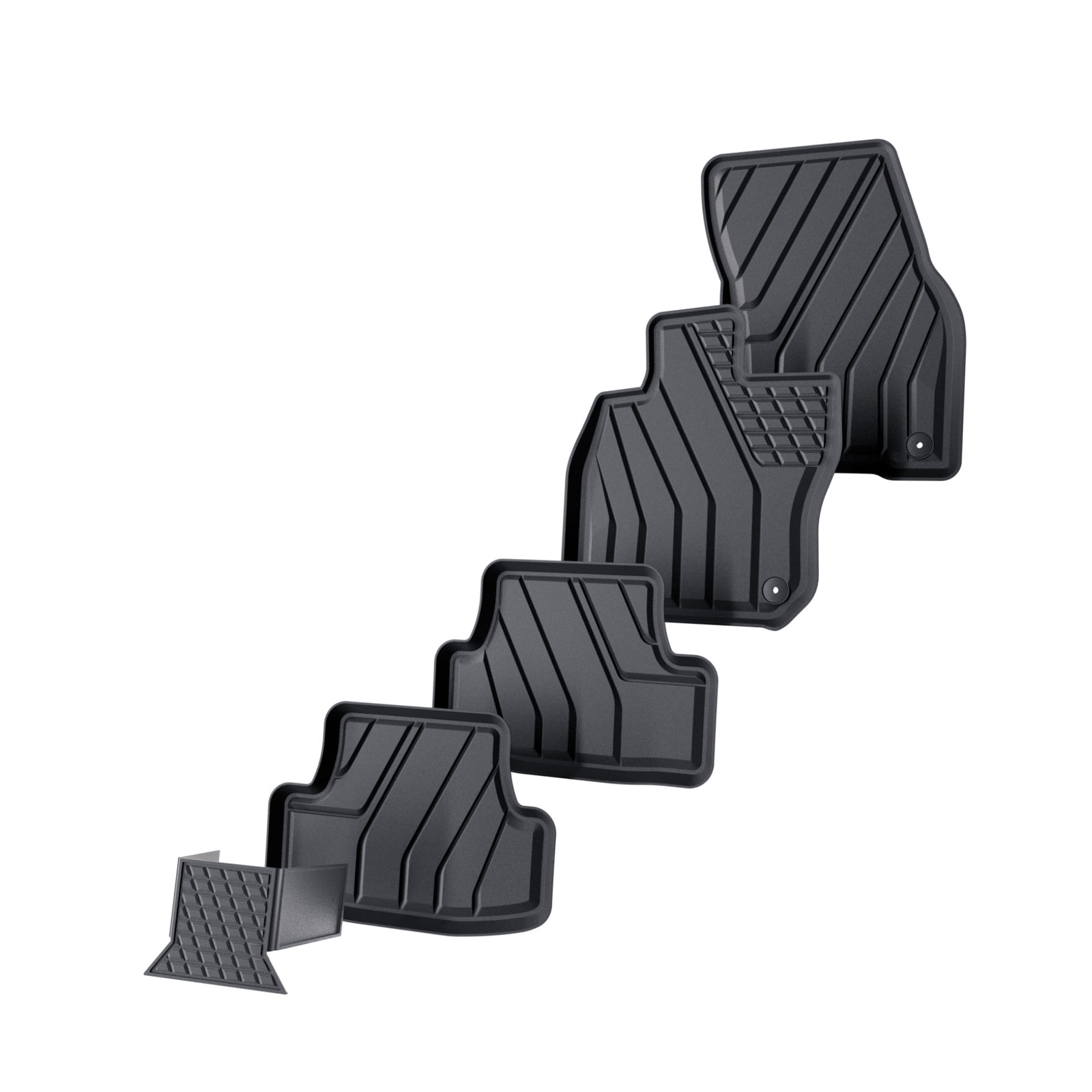 - Bilmattorna är tillverkade av ett speciellt TPE-material som är beständigt mot hög och låg temperatur, oljor och kemiska ämnen.