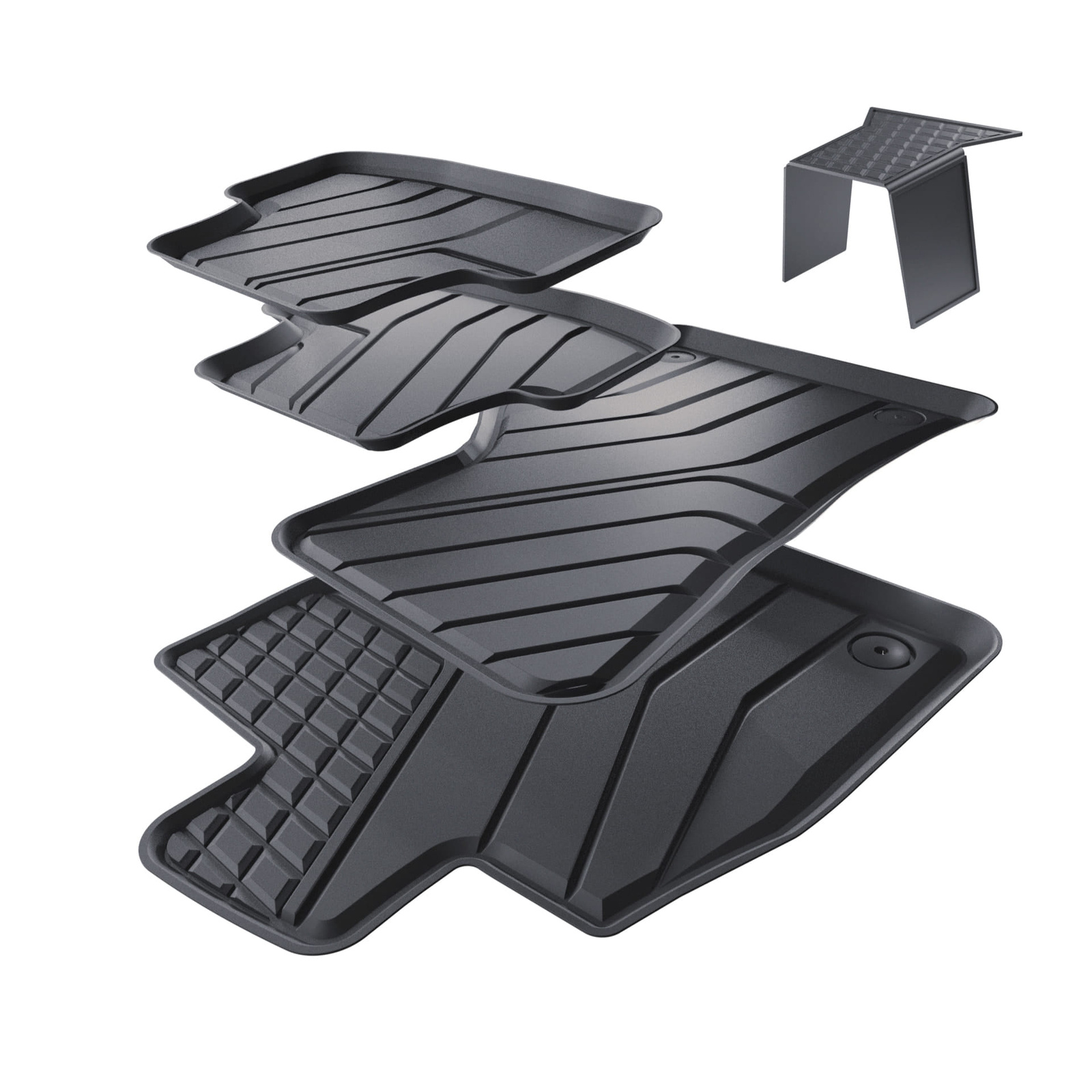 - Bilmattorna är tillverkade av ett speciellt TPE-material som är beständigt mot hög och låg temperatur, oljor och kemiska ämnen.