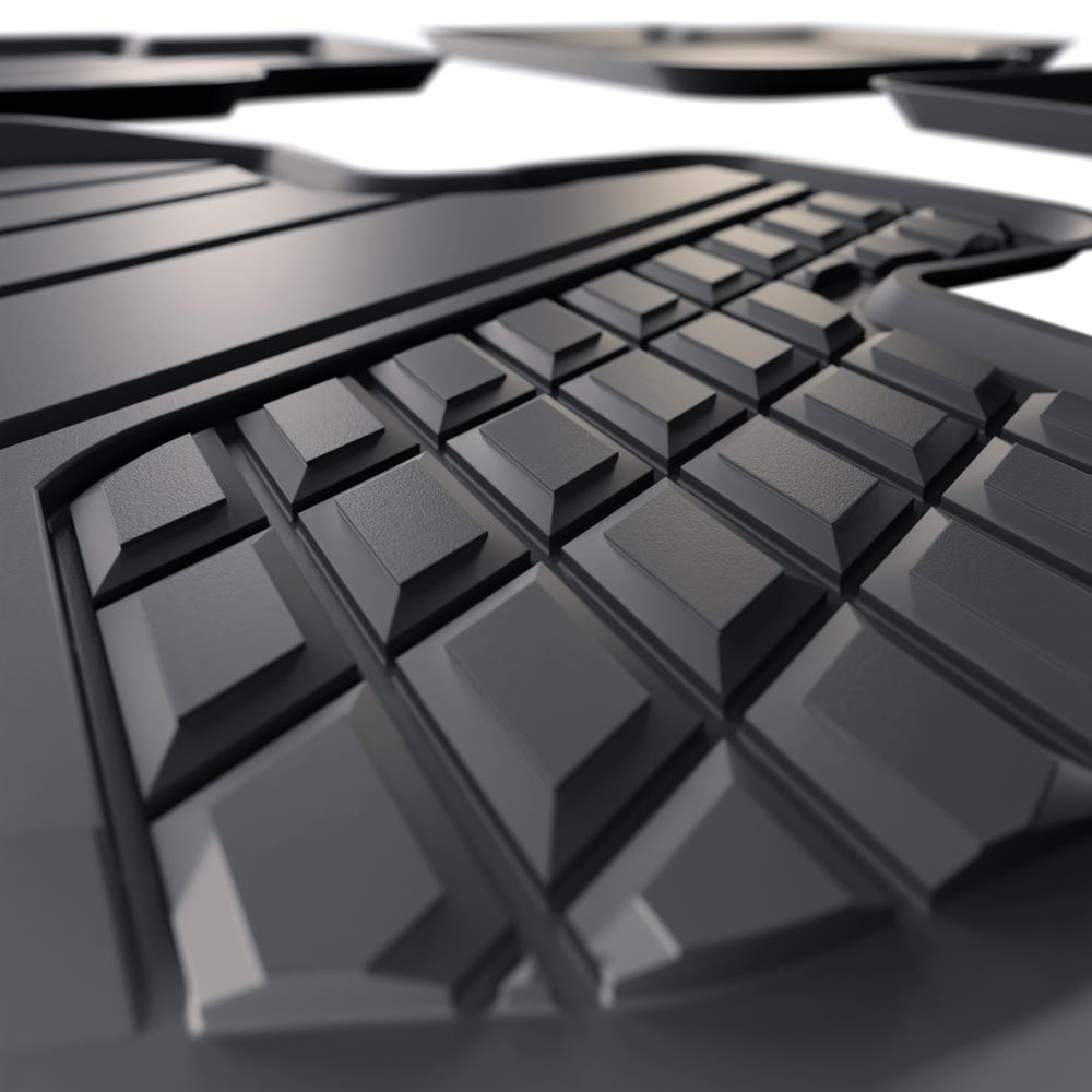 - Den perfekta passformen och golvfästen (om de finns i aktuell bilmodell) förhindrar förflyttning av mattan under färden. Mattorna tillverkas med iakttagande av de högsta kvalitetsstandarderna och material som används i produktionen är säkra för hälsan och återvinningsbara. Mattorna är vattentäta och lättskötta (de kan rengöras under rinnande vatten eller genom högtryckstvätt).