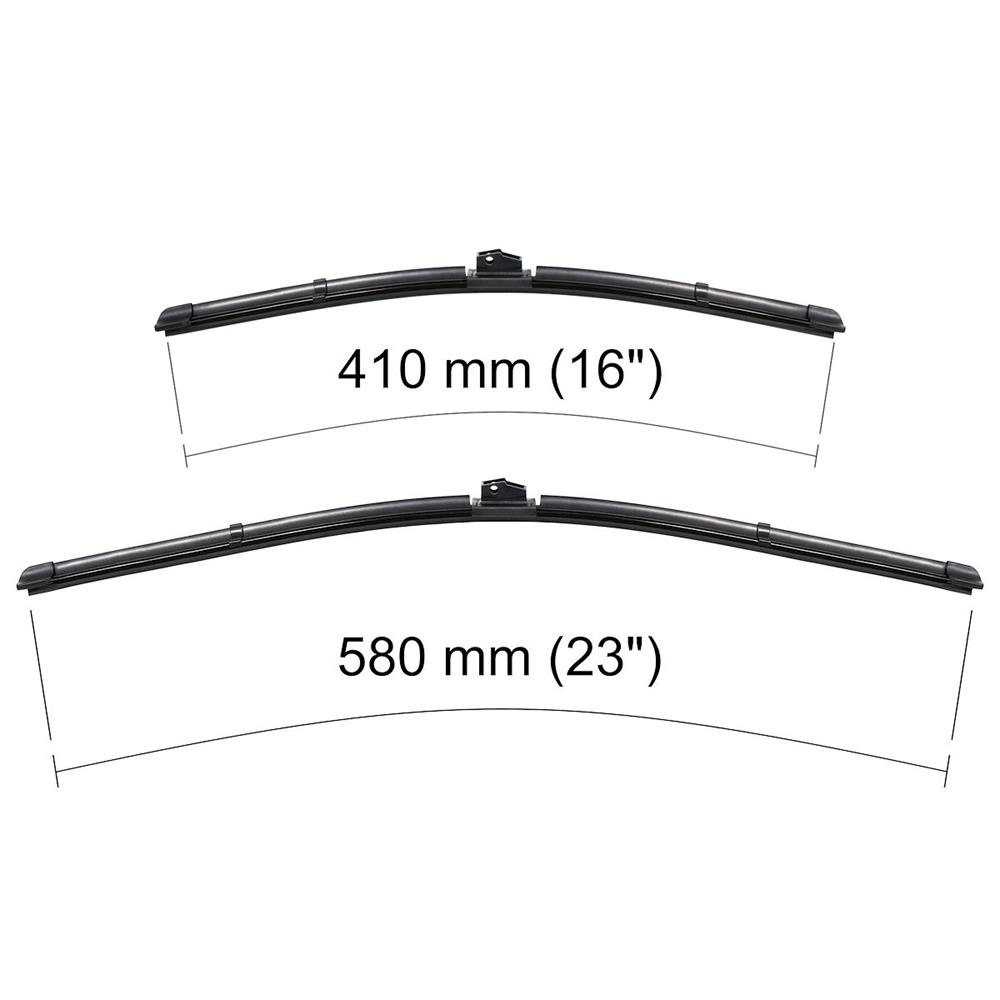 - De platta torkarbladen saknar metallinfattningar. Gummibladet är fastsatt direkt i torkarbladets fjädrande lister och tack vare den lämpliga formen ger torkarbladet ett litet luftmotstånd. Gummibladets form samt avsaknad av metallstommen gör att hela bladet får en bättre anliggning mot rutan.